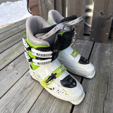 Tecnica alpinstøvler for barn i hvit og grønn farge. Støvlene har tre spenner for god justering og støtte. Sålelengde er merket til 253 mm - tilsvarer ca størrelse 31-34. Myk og polstret innersko gir komfort. Passer til vanlig alpinbruk i bakke med standard alpinbindinger.