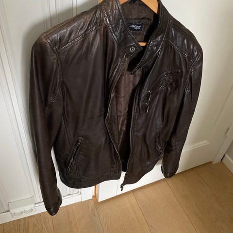 Selger skinnjakke sort str. 60 av merket Aleksander Signature. Pent brukt kr. 600
