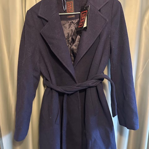 Kåpen fremstår som velholdt og har ingen synlige skader eller flekker (med mindre annet oppgis). En stilren og eksklusiv kåpe som løfter ethvert antrekk.