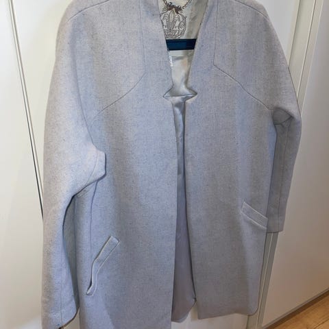 Selger en nydelig hvit ullkåpe fra Stefanel. Kåpen har et klassisk og tidløst design som passer perfekt til både hverdagsbruk og finere anledninger. Den er laget i en myk og varm ullblanding som holder deg god og varm på kjølige dager.