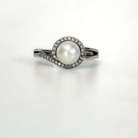 Rhodinert sølvring 925 med hvit perle.