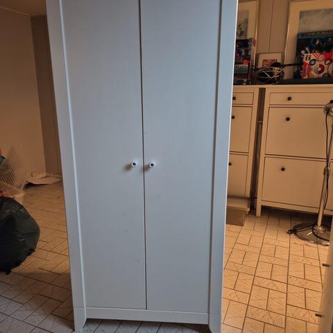 Hvitt barneskap fra Ikea.. Flere bruksmerker. Trenger et lite "ansiktsløft".