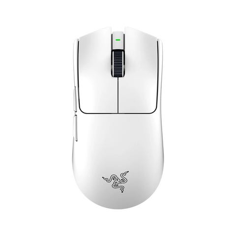Logitech G304 trådløs gamingmus i hvit farge. Datamusen er designet for gaming, med flere knapper og rullehjul plassert på oversiden. Den trådløse tilkoblingen gjør at den kan brukes uten kabel til kompatible enheter som stasjonær PC og bærbar PC.