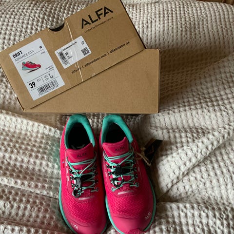 Alfa Stokka Advance joggesko i størrelse 38. Skoene har beige overdel med mørke lisser og detaljer, samt mørk yttersåle med mønster for godt grep. Modellen er lav og passer til hverdagsbruk og lett aktivitet. Innvendig fôr er mørkt og mykt for økt komfort. Overdelen er i tekstil og syntetisk materiale med snøring for justering av passform.Goretex