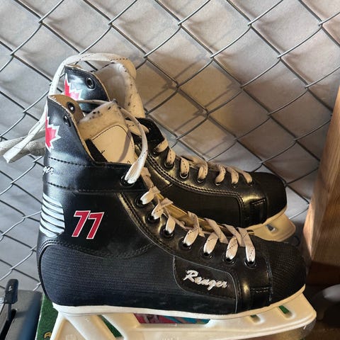 Ranger ishockeyskøyter i størrelse 40. Skøytene er i svart og hvit farge med snøring foran. De har høyt skaft som gir støtte rundt ankel, samt tradisjonelle ishockeyskinneblad. Egnet til ishockey og generell bruk på is for personer som passer i skostørrelse 40.