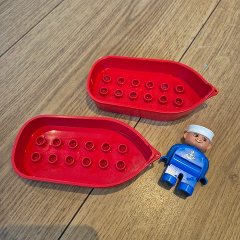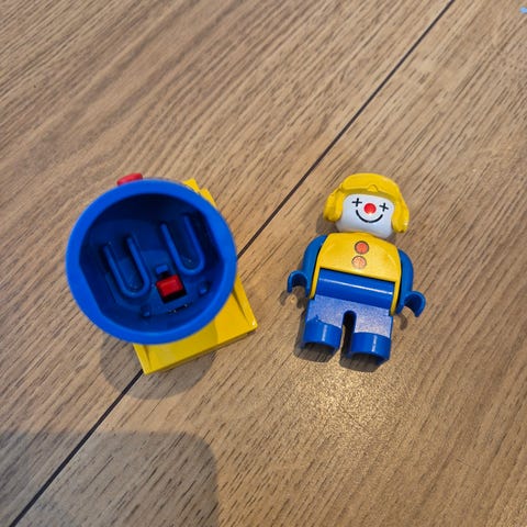Helikopter og figur fra Duplo. Mangler noen deler.
