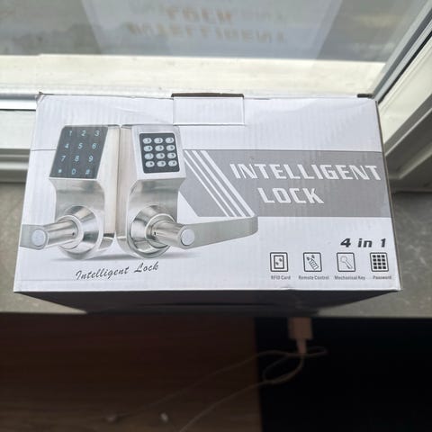 Elektronisk dørlås med låskasse selges, fungerer helt fint. En nøkkel følger med. Demontert ifm. bytte av ytterdør.
