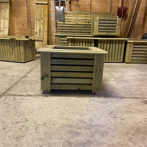 Snekkerbygd utebenk med oppbevaring i heltre