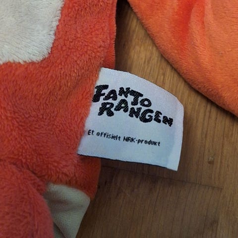 Liten Fantorangen kosedyr. Ca. 18 cm.
