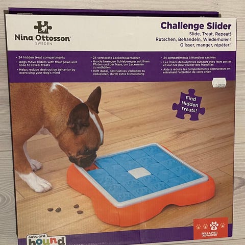 Nina Ottosson, Dog Brick, aktivitetsleke for hund nivå 2. Hjernetrimspill for hund, kun brukt noen få ganger.