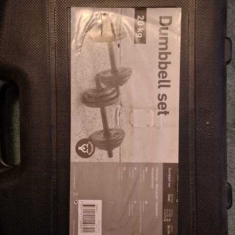 Dumbbell Set manualsett med justerbare manualer og støpejernsskiver i koffert. Settet inneholder krommet manualstang med gjengelås og flere støpejernsskiver som kan kombineres for ulik vektbelastning. Leveres i plastkoffert med formstøpt innredning for enkel oppbevaring og transport. Egnet til styrketrening av overkropp, armer og skuldre hjemme eller på treningsrom.