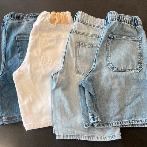 5 shortser for gutt i størrelse 140. Den ene fra Zara er i str 128 med noe løsere passform, men vært brukt samtidig som øvrige shorts. Shortsene er blå og grønne med smal passform og kan brukes både til pent og hverdags. Selges samlet for 200kr.