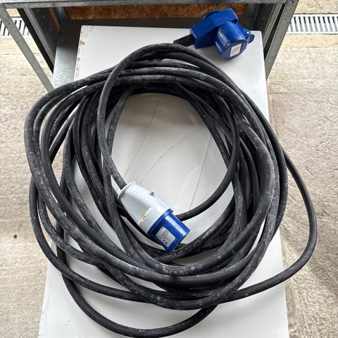 Strømkabel med flere ledere i grå ytterkappe. Kabelen leveres som en lengre sammenrullet lengde, med avisolerte ender som viser flere enkeltledere. Egnet for elektriske installasjoner der denne kabeltypen og dimensjonen er korrekt i henhold til gjeldende forskrifter. Nøyaktig lengde, tverrsnitt og type bør kontrolleres av kjøper før bruk.