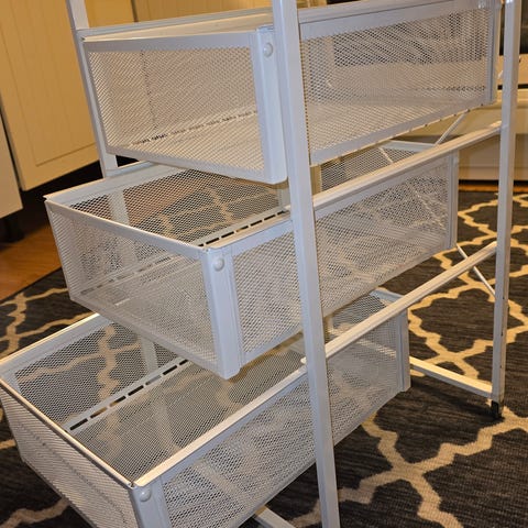Skuffeseksjon på hjul i grå metall med tre skuffer. Høyde 58, Dybde 50, Bredde 41. Nederste skuff har lås med nøkkel, og låser de to nederste skuffer. Seksjonen står på hjul som gjør den enkel å flytte, og passer under de fleste skrivebord eller som frittstående oppbevaringsmøbel på kontor eller hjemmekontor. Noen små bruksmerker. Selges til 300 per stykk