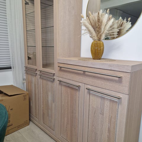 Helt nytt skap fra IKEA, selges pga plassmangel. Nye knotter i "messing" er byttet ut med de opprinnelige.