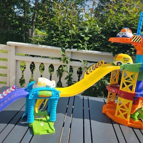Fisher-Price bilbane lekesett i plast.
