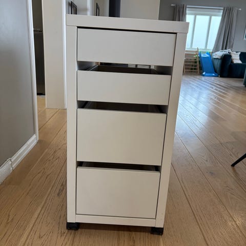 IKEA skuffeseksjon i svart farge. Seksjonen har to skuffer og en glatt, rett toppflate. Passer som oppbevaringsmøbel på kontor, soverom eller stue, for eksempel ved siden av skrivebord eller seng. Utførelsen er kompakt og egner seg i mindre rom der det er behov for ekstra oppbevaringsplass.