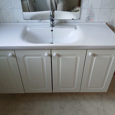 Baderomsinnredning med hvit servant