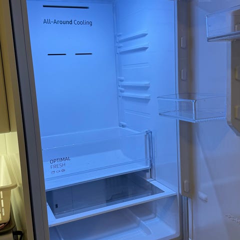 Plastikken/lim på bilde er fra frakt emballasjen. Nytt kombi kjøleskap til å ha i skap, lite brukt.