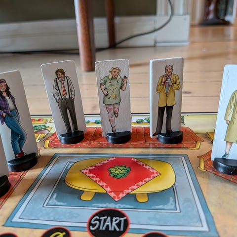 Brettet er designet etter settet fra serien, med både Kjøkken, Stue, Inngang og Oppe. Hver spiller starter i sofaen i stuen med en brikke som representerer én karakter fra serien; Karl, Nils, Henry, Målfrid, Trine eller Edna. Spilleren må etter tur kaste en 6 på en terning før de kan forlate sofaen og gå inn i startfeltet. Deretter må de velge en oppgave, enten Kjøkken, Inngang eller Oppe. Det er bare 2 eller hver, så bare 2 kan velge det samme. Deretter må spillerne manøvrere huset og flytte feltene til spørsmålsfeltet i det valgte rommet, hvor en annen spiller fritt kan velge et quizspørsmål fra quizmanualen. Hvis spilleren velger riktig, kan de gå tilbake til sofaen for å vinne. Hvis ikke, må de gå tilbake til sofaen og velge en ny oppgave.