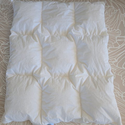 Princess Dream Collection dundyne for barn i størrelse 80x100 cm. Dynen er hvit og fylt med dun og fjær, med trekk i tekstil som vist på merkelappen. Produktet er merket med Nomite, som indikerer at det er egnet for husstøvallergikere. Dynen passer til sprinkelseng eller barnevogn som bruker mål 80x100 cm. Kan vaskes og vedlikeholdes etter anvisning på vaskeetiketten.