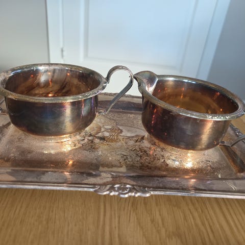 Vakkert vintage serveringsbrett i sølvplett