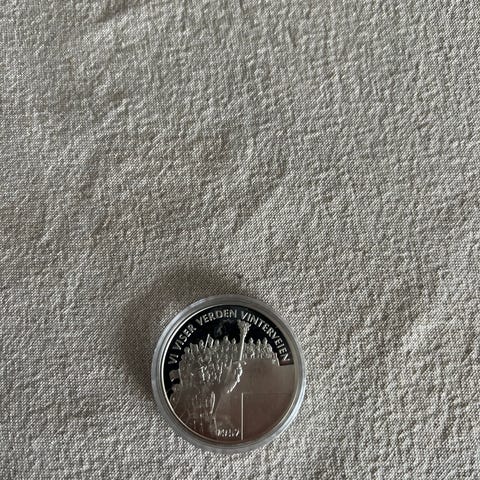 Sølv 925/1000 Pålydene 50 kr. 1993 Vekt 16.85gr. 15.55gr 999/1000 Selges til spotpris pr. 28/2 kr.28.67pr. gr. Ligger i kapsel.