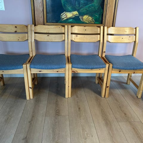 Har også fire spisestoler som passer til med tidsriktig retro design. Disse minner også litt om Fureka. De er kjempegode å sitte på og har et flott ulltrekk.