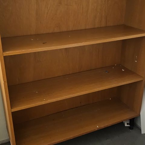 Gir bort en enkel og stilren vegghylle i tre.