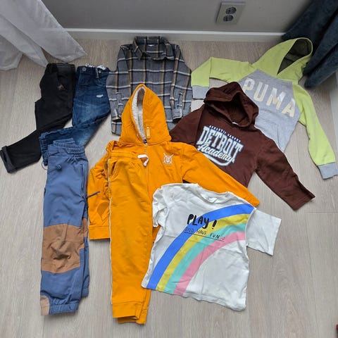 Langermede gensere, vest, jeans for gutter størrelse 6–7. Pent brukt, men i god stand