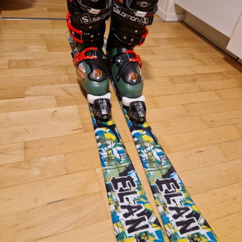 Salomon QST Max Jr alpinski i lengde 120 cm. Skiene har lilla toppsheet med hvite detaljer og svarte såler. Montert med Salomon-bindinger. Junior-modell egnet for barn/unge som trenger et par allround alpinski til bruk i alpinbakke.