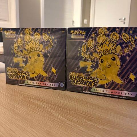 Sealed Surging Sparks Pokemoncentre etb med stamped promo gjort av Shinji Kanda