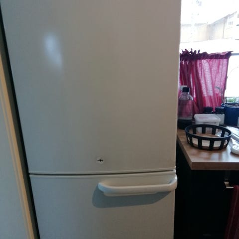 Stått lengre tid i bod som ekstra kjøleskap. Har fått noen merker i frysedøren, men ikke som påvirker funksjonaliteten.