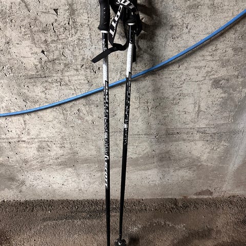 Madshus Ada skistaver i lengde 130 cm. Stavene har håndtak med reimer og rør i hvit og svart farge med mønster. Egnet som skistaver til barn på langrenn.
