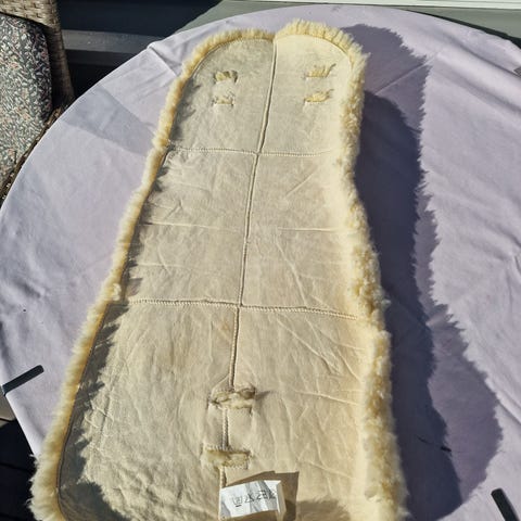 Lammeull overside og glatt bakside. Flere åpninger til seler gjør at innlegget kan brukes i barnevogn eller sportsvogn med ulike selesystemer.