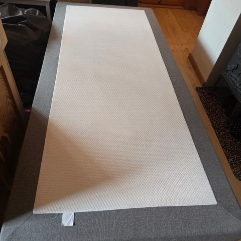 Solid IKEA Skotterud rammemadrass i grå tekstil. Senga har blitt brukt med overmadrass (følger ikke med), men har noen flekker på det hvite trekket . Egner seg som enkeltseng på soverom, gjesterom eller hybel. Avbildede ben følger med, men følger ikke med overmadrass.