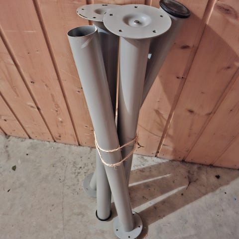 Bordbena i tre er også til salg inkludert bordplate (50 kr)