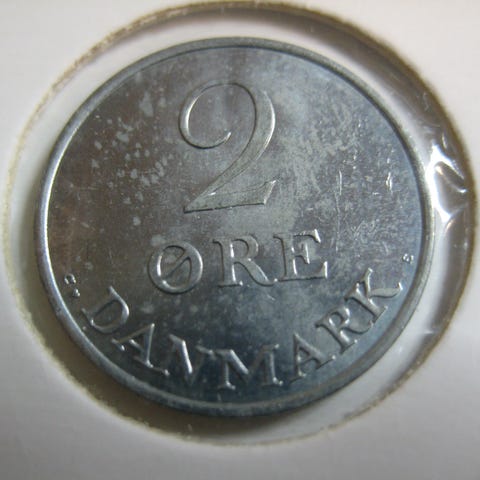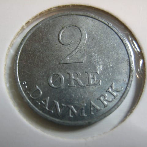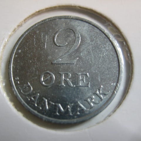 2 øre Danmark 1968 kv 0 ,selges kr 20.-+porto