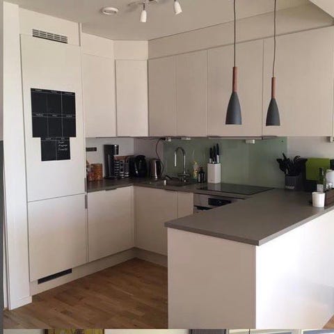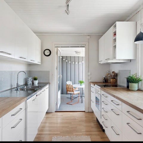 Halve kjøkkenet er demontert og kan hentes raskt etter budslutt. Det resterende blir demontert i uke 14/15. ventilator kan følge med hvis ønskelig. Den trenger nye filtre og en god vask.
