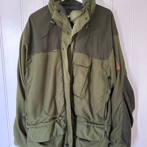 Dovrefjell turjakke i grønnfarger. Jakken har hette, flere utvendige lommer med klaff og glidelås, samt justering i livet. Forsterkede partier på skuldre og albuer gir ekstra slitestyrke. Egnet som ytterjakke til tur og friluftsliv. Str. XXL
