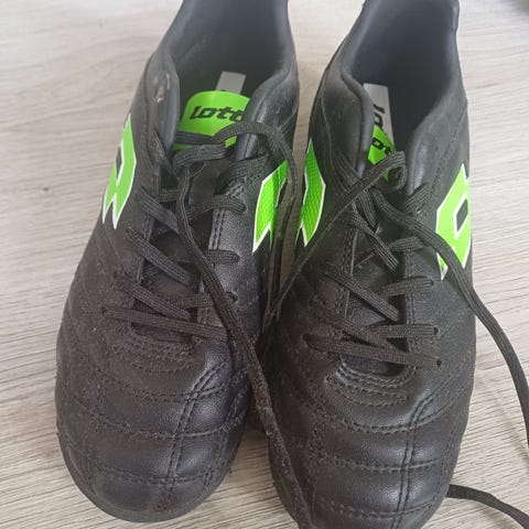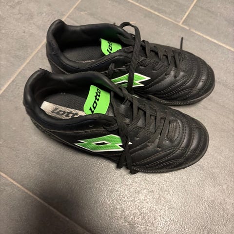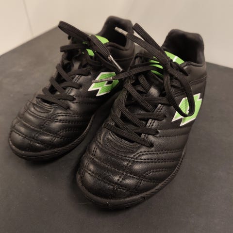 Lotto fotballsko for bruk på grus eller kunstgress i størrelse EU 33. Skoene er svarte med grønne detaljer og har snøring foran. Overdelen er i syntetisk materiale med polstret og sydd front for bedre ballkontroll. Passer også perfekt til barn der spiller mye i ballbingen i skolen.