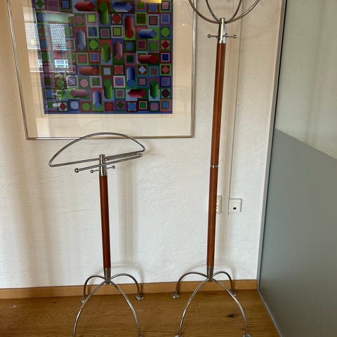 Stumtjener i metall med tre ben i sølvfarget utførelse. Øverst er det flere kroker for oppheng av jakker og yttertøy, samt ekstra kroker i midten for vesker eller mindre plagg. Fotkonstruksjonen har kryssformet base for stabilitet. Passer til bruk i entré, gang, kontor eller venterom.