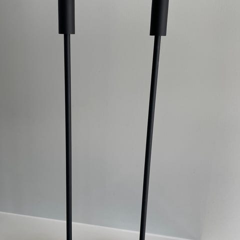 Kremmerhuset dekorasjonsornament på fot. Kvadratisk, gjennombrutt panel med utskårne mønstre, montert på metallstativ. Egner seg som interiørdetalj på skjenk, hylle eller bord. Farge og materiale er ikke spesifisert.