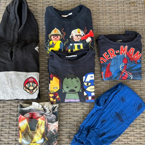 Pysjgenser, marvel pysjbukse, legostrømpebukse, marvel shorts, joggebukse , blå strømpebukse