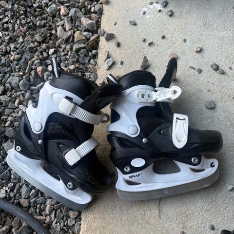 Ishockeyskøyter for barn i størrelse 27-30. Skøytene har justerbar lukking med rem og spenne, samt polstret innside for bedre komfort. Fargekombinasjon svart og grå. Egnet til ishockey og generell skøytebruk for barn i aktuell skostørrelse.