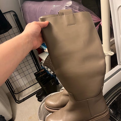 H&M støvler i størrelse 39. Høye støvler i beige farge med kraftig såle og rund tå. Passer til hverdagsbruk i kjøligere vær og kan kombineres med både bukser og skjørt/kjole.