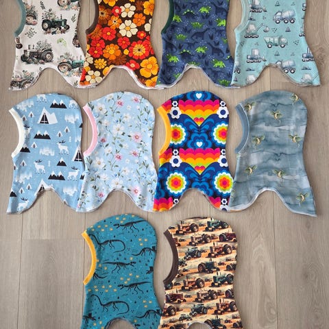 3 for 2 hjemmesydde balaclava-luer str 1-2 år