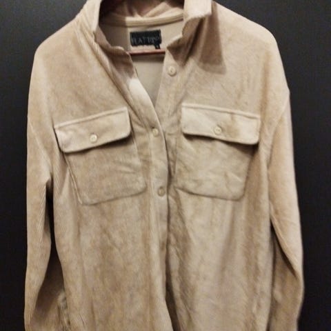 Flattop jakke for dame i størrelse S. Jakken er kremhvit og laget av bomull. Modellen har lange ermer, krage og knappelukking foran. Den har påsydde lommer i front og justerbare knapper nederst. Passer som lett ytterjakke eller som et ekstra lag over andre plagg i hverdagen.