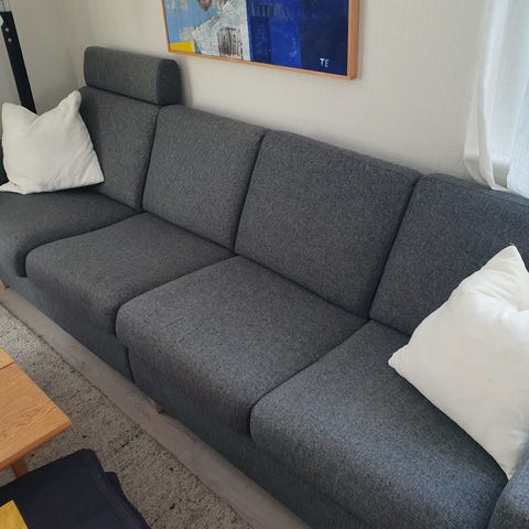 Brukt til «kontorsofa», litt flekker etter hunder.