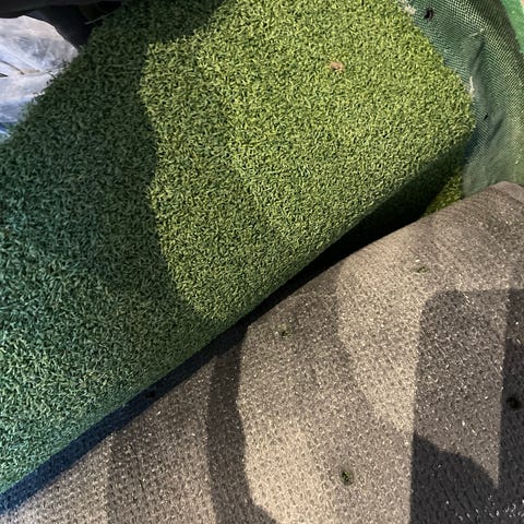 Golfmatte/tangentar selges. Er støvsuget og vasket siden dette bildet ble tatt. Fremstår i god stand. Stor størrelse på matten. Har tidligere stått på range hos Oppdal GK